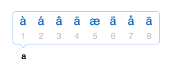 アイフォンで馴染みの、例えばaを選択したら、いろんなaがツールバーに表示されることを