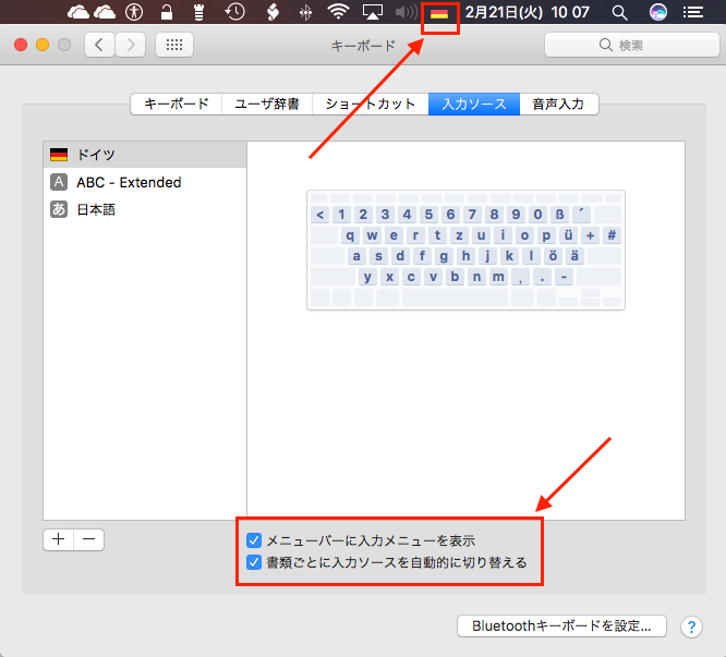 できるようにしてれば、入力ソースをドイツ語にしてキーボードビューワを表示すれば、必要な文字をどのキーで入力できるのか分かります。