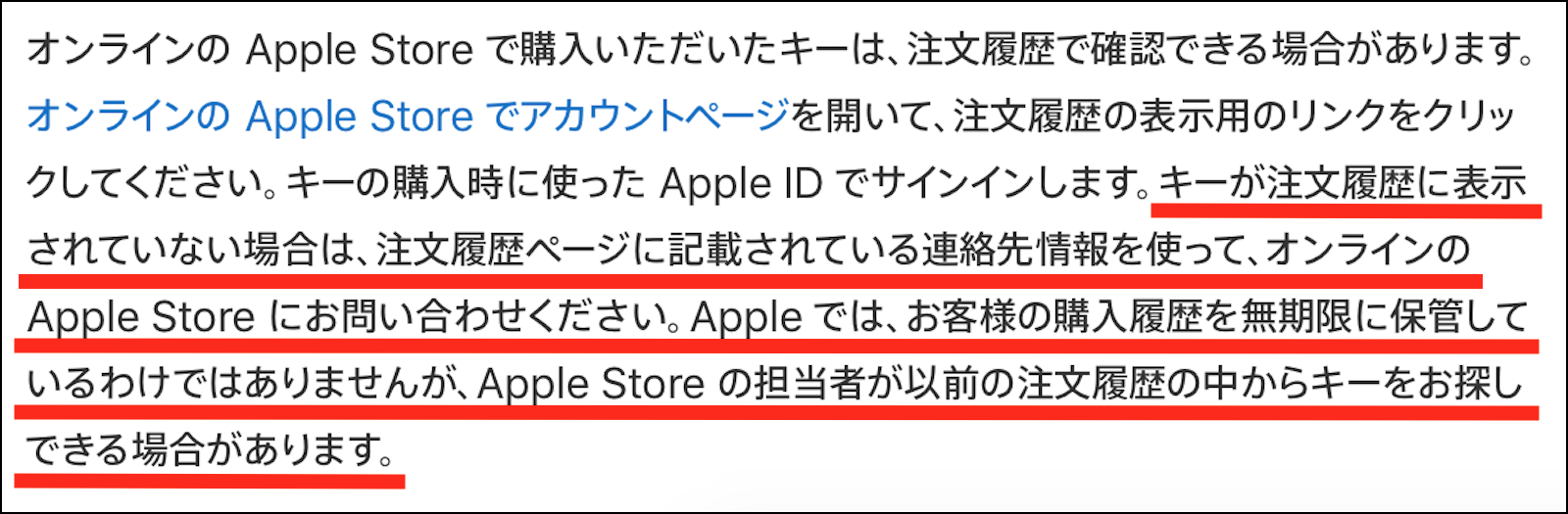 ライセンスキーの再発行ではなく、18 ヶ月以上前の購入履歴の確認が目的ですので、Apple サポートではなく直接 Apple Store コールセンターの担当者に問い合わせた方が話が早い様な気がしますが・・・。
