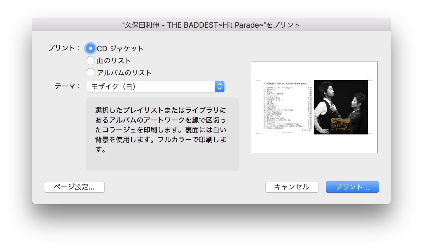 iTunesのファイル>印刷で作ろうとしています。