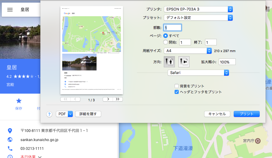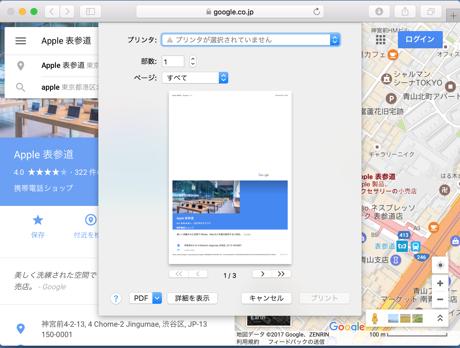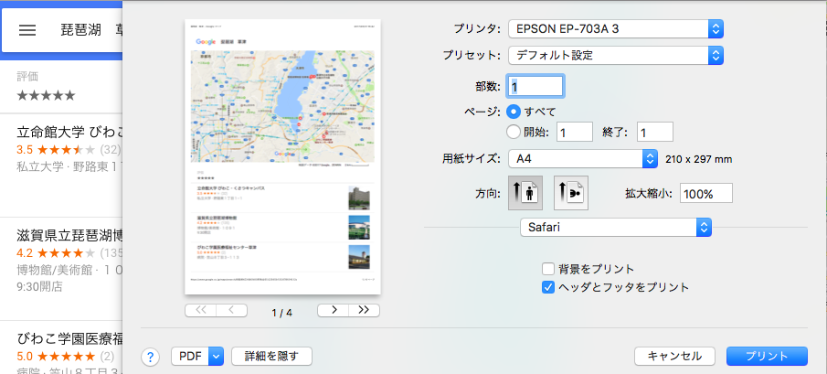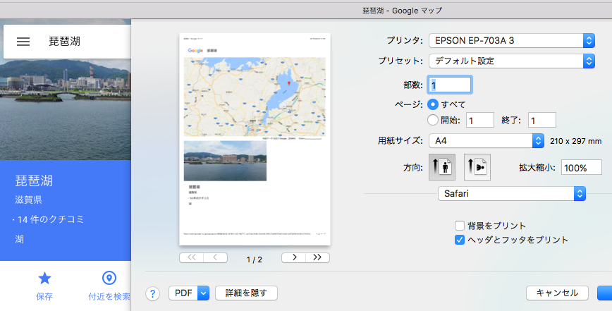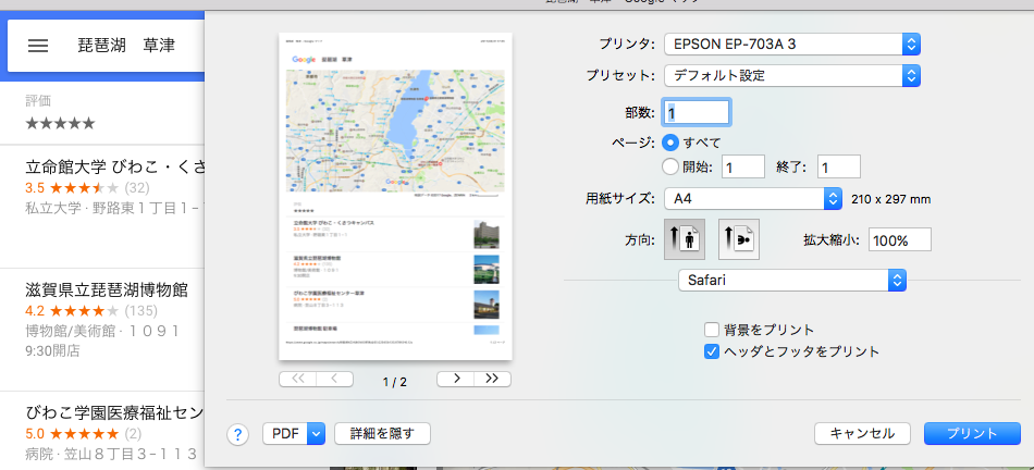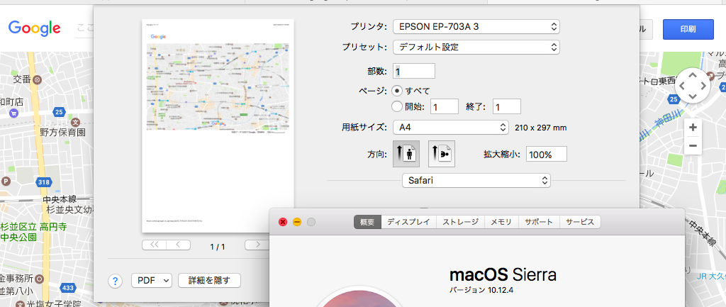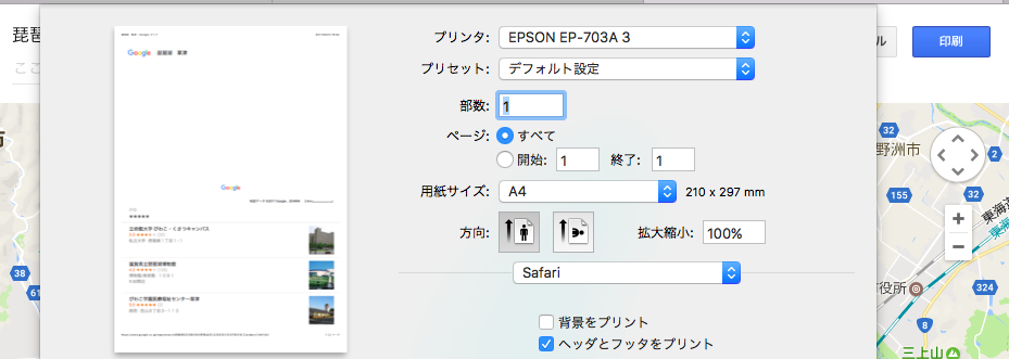 safariにてgooglemapを印刷しようとしてもプレビューに空白しか出てこない。