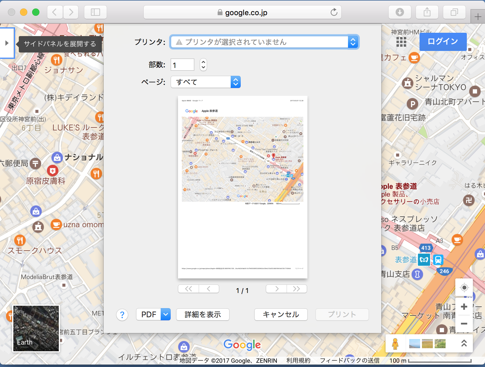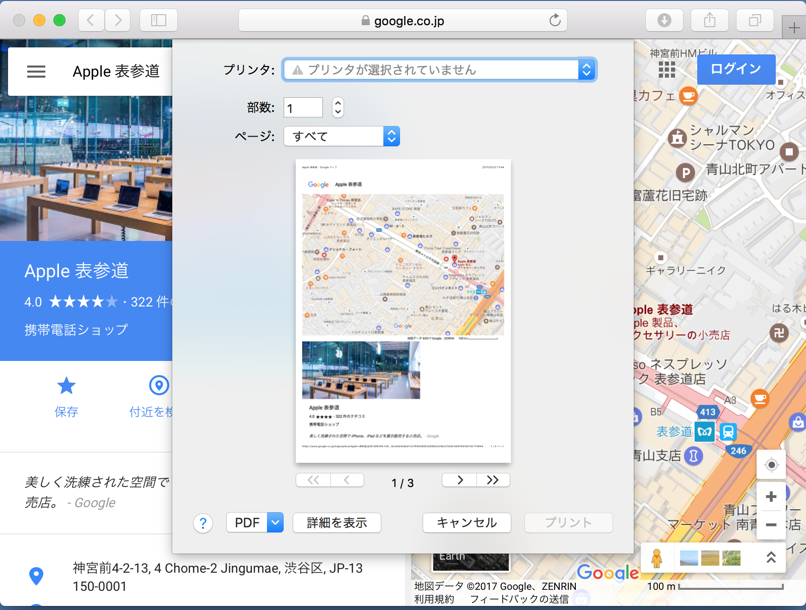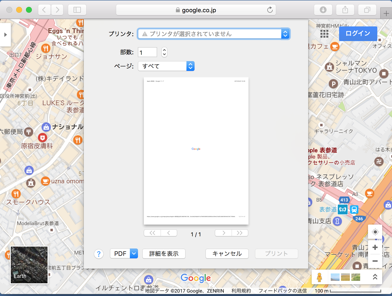 safariにてgooglemapを印刷しようとしてもプレビューに空白しか出てこない。