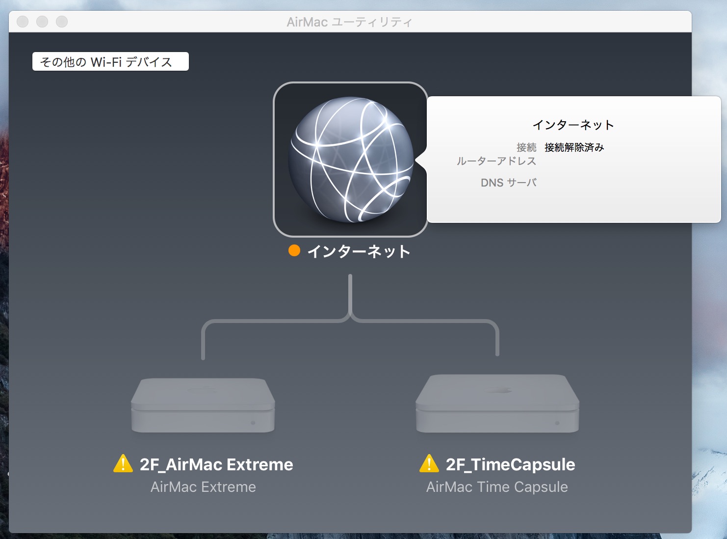 AirMacの設定「IPv6の設定:リンクローカルのみ」「ルーターモード:切(ブリッジモード)」