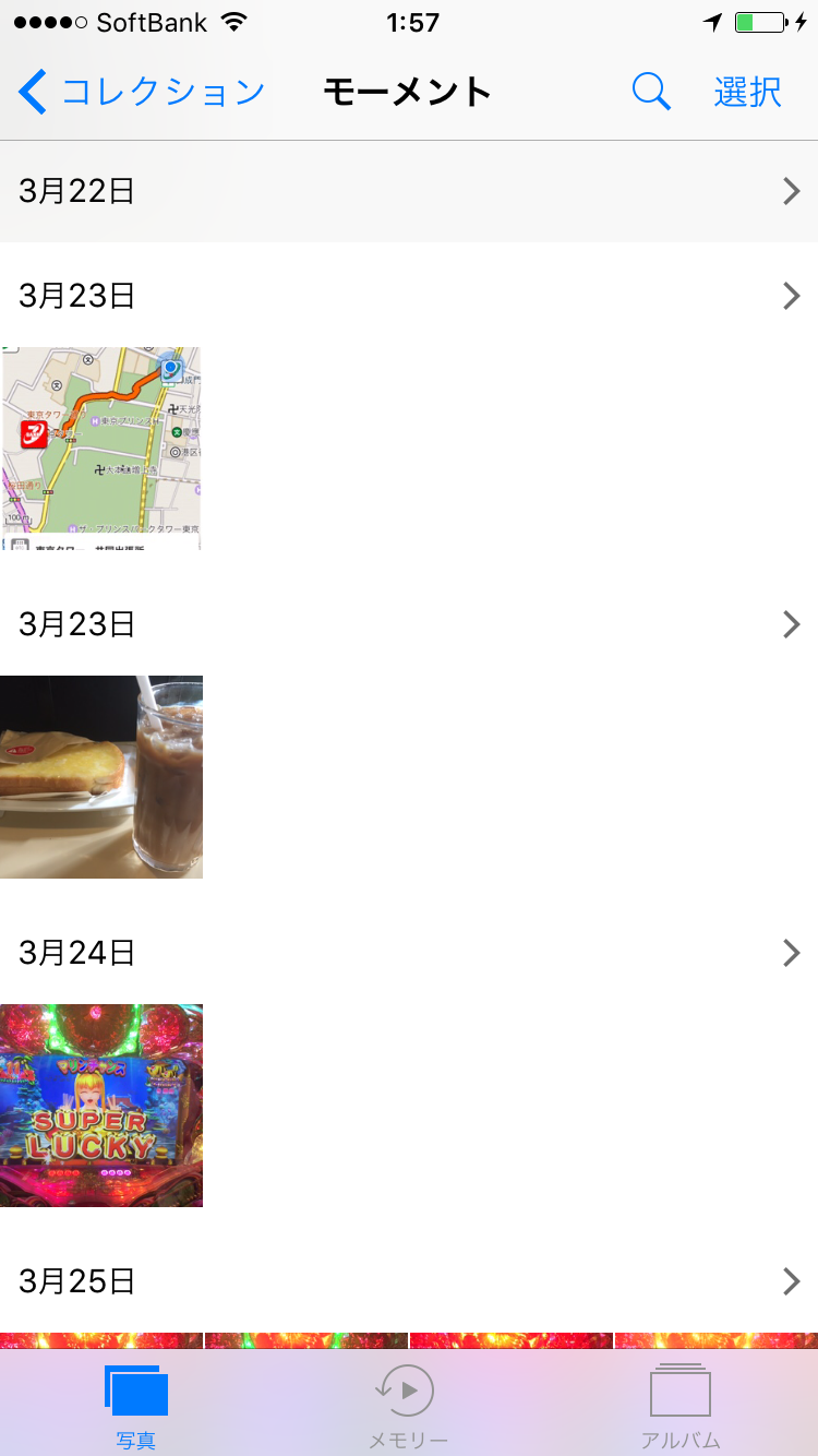 私はiCloudフォトストリームを使っていないので"すべての写真"ではなく"カメラロール"となっていますが、どんなに気を使っても写真アプリのライブラリにアクセスするアプリが並び順をぐちゃぐちゃにすることがあるので、気にしないことにしてます。