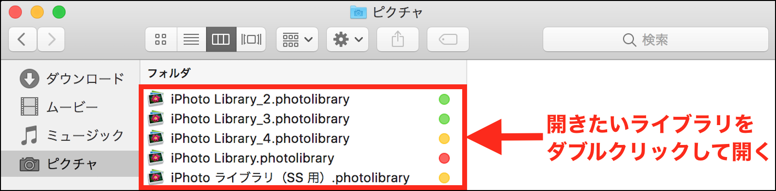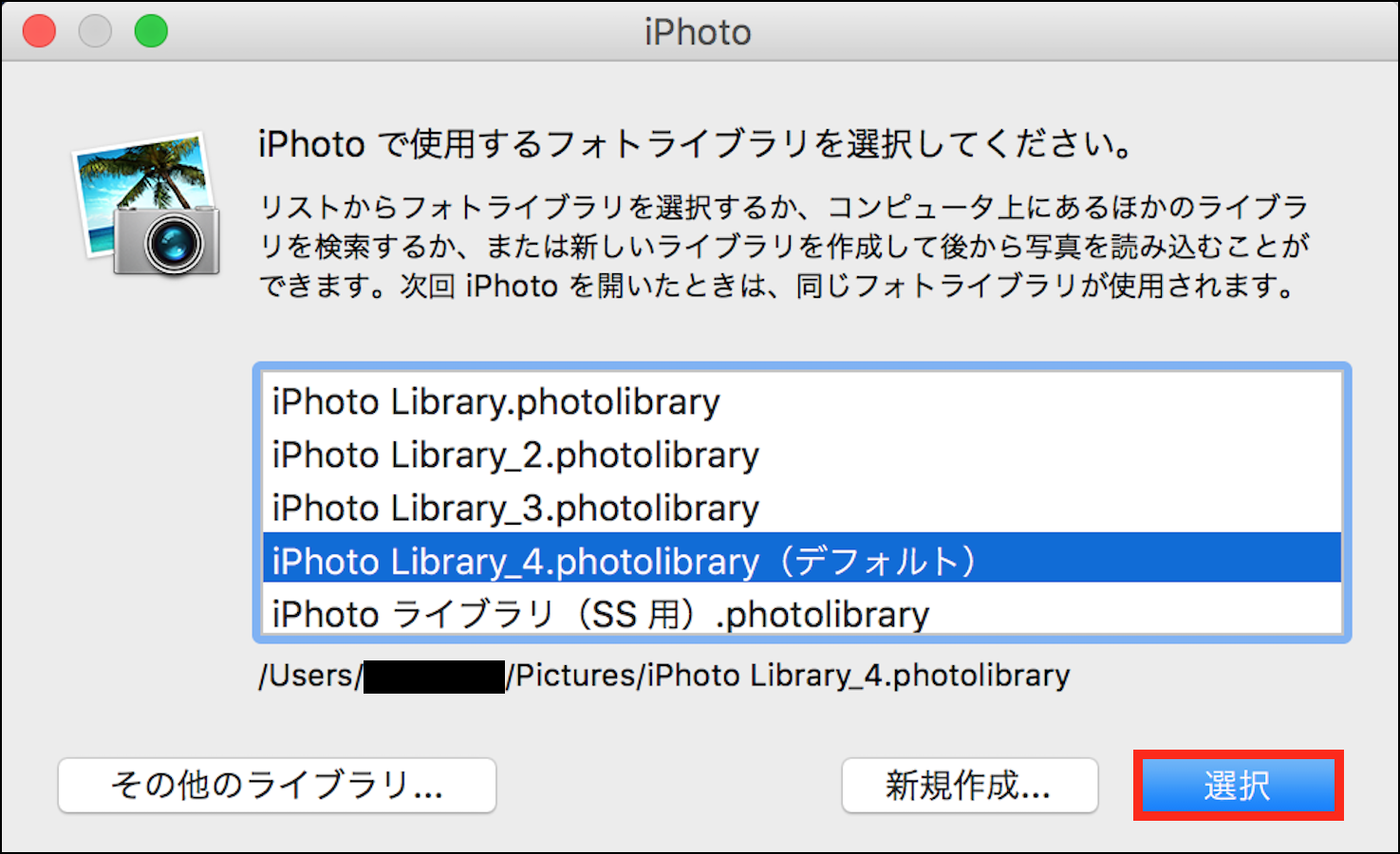 以下のように複数のiPhotoフォトライブラリを使用することができます。