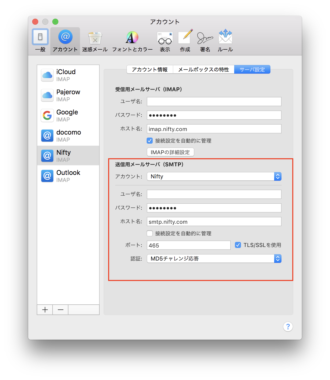 @niftyのIMAPを純正のMailを使って利用していましたが、数日前より急にメール送信ができなくなりました。
