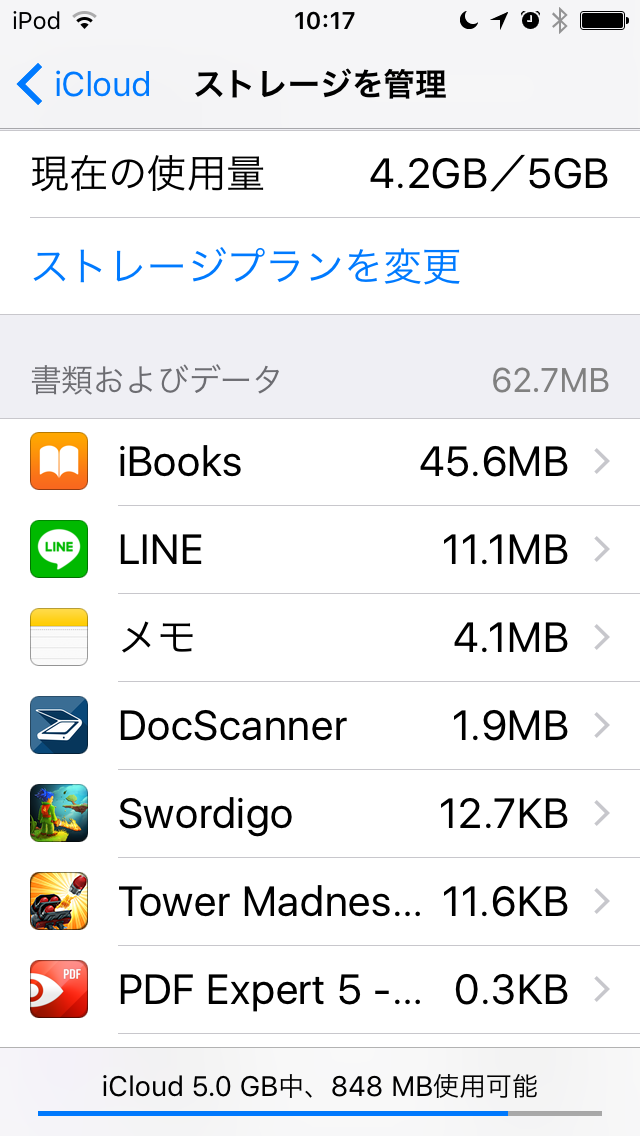iCloudバックアップやiCloudフォトライブラリの容量も、iCloudストレージの容量を消費します。 それぞれの容量を確認してみるとどうでしょうか? 可能ならば、バックアップを削除したり、写真をパソコンへ移動させた上で削除します。