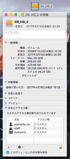 HDDのアイコンをダブルクリックすると「内容を表示するためのアクセス権がないため・・・・」と表示します。