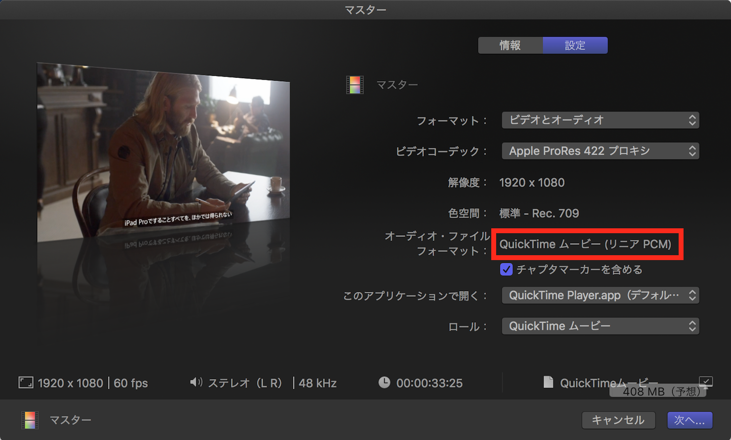 元の動画素材はH.264とPCMだそうですが(参考として、ZOOMのQ2nと言うレコーダーです)、