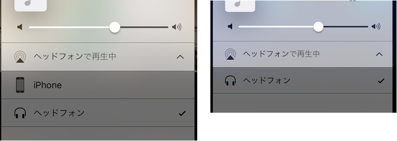 コントロールセンターの「ヘッドフォンで再生中」の下に、