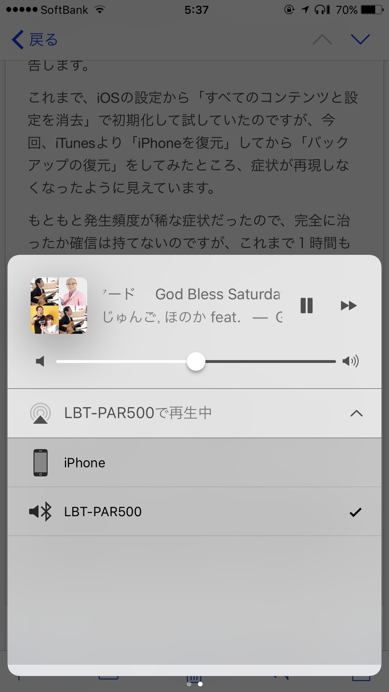 そして先日、途切れる前後でコントロールセンターの音声の出力先の表示が変わることを突き止めました。