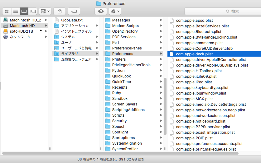 一旦「com.apple.dock.plist」を「Prefarences」から出してみましたが変化なかったので戻しました。