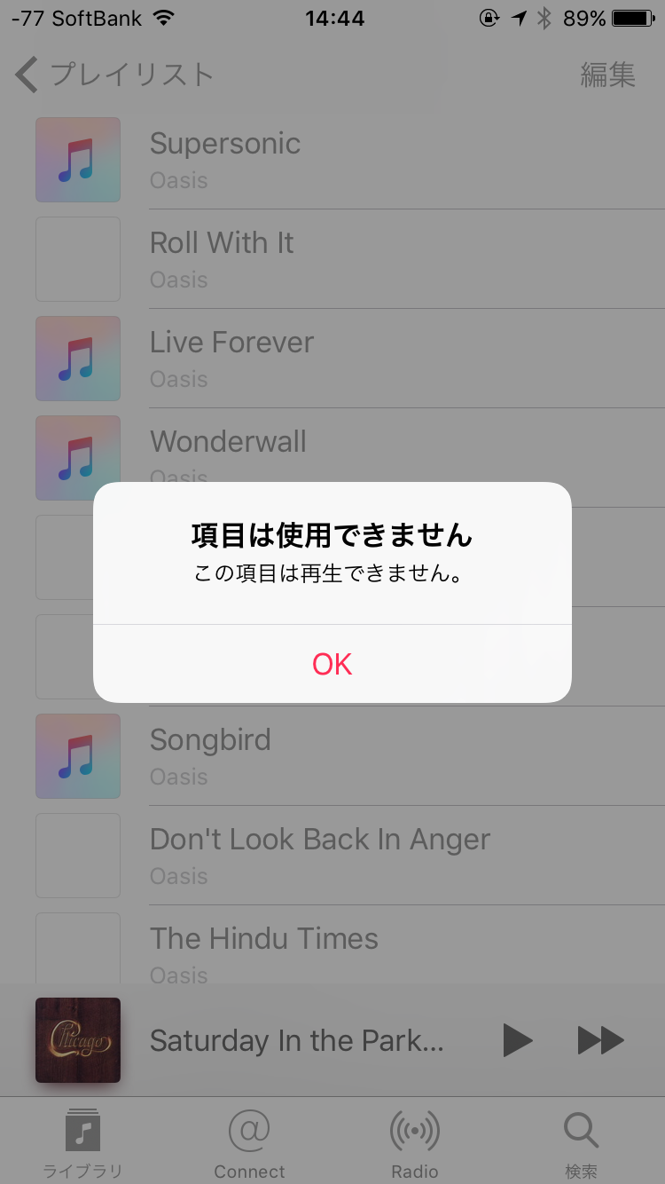 先日iPhone7に買い替え、バックアップから復元すると、ミュージックアプリの中の曲だけ画像のような感じに復元されました。曲名やプレイリストは入っていますが、再生できません。iTunesで購入したものは再生できますが、自分が保有しているCDからiTunesにインストールしたものは、再生されないみたいです。