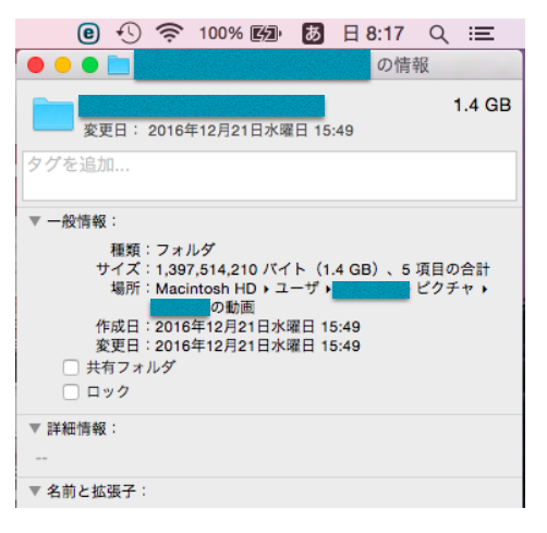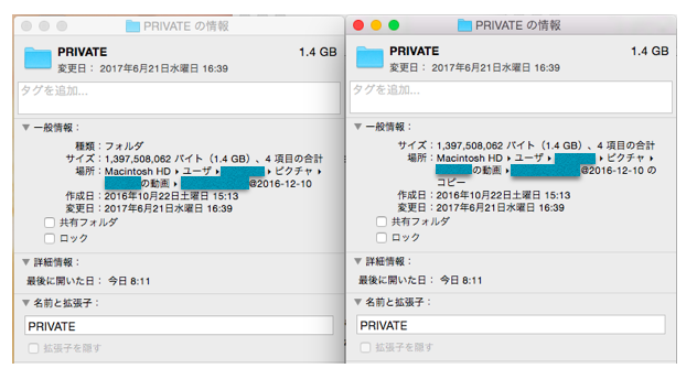 ユーザー-no-MacBook-Air:~ ユーザー名$ ls -la /Volumes/TS128GJDL130/◯◯の動画/◯◯@2016-12-10/PRIVATE