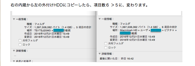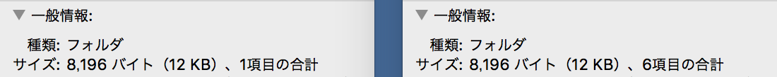 同じものなのに、項目数が異なるのは、Finderに起因することもあり得るのでしょうか?