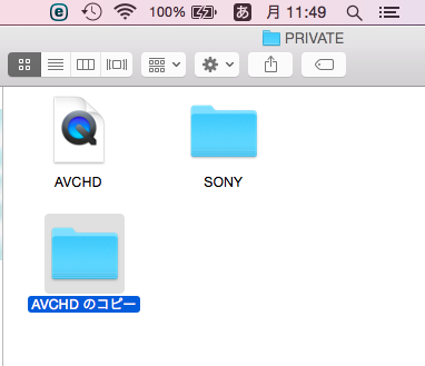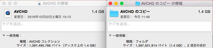 drwxrwxrwx 3 ユーザー名 staff 102 10 22 2016 AVCHD
