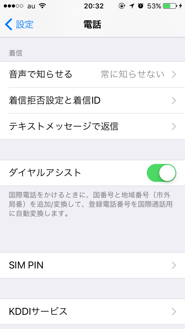 iPadは身内から使わなくなったiPadを貰った物でキャリアとの契約をしておらず、Wi-Fiの環境でのみしか使えない状態のためか、電話マークのところはキャリアとなっており、自動をオンにするかどうかしかありません。