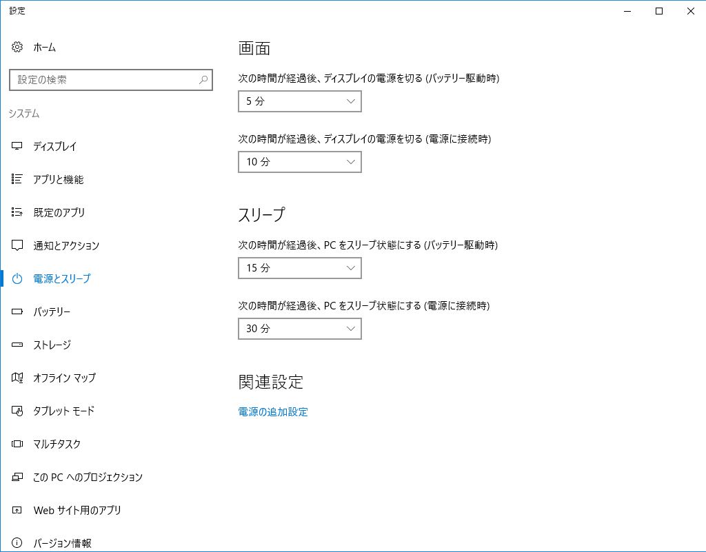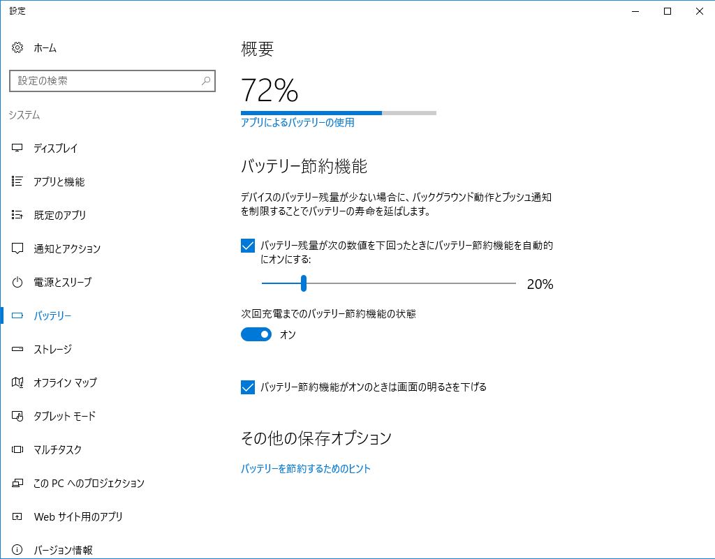 省エネルギー環境設定で、ACアダプタ接続時、バッテリー駆動時の画面の明るさ設定は確認しましたか?