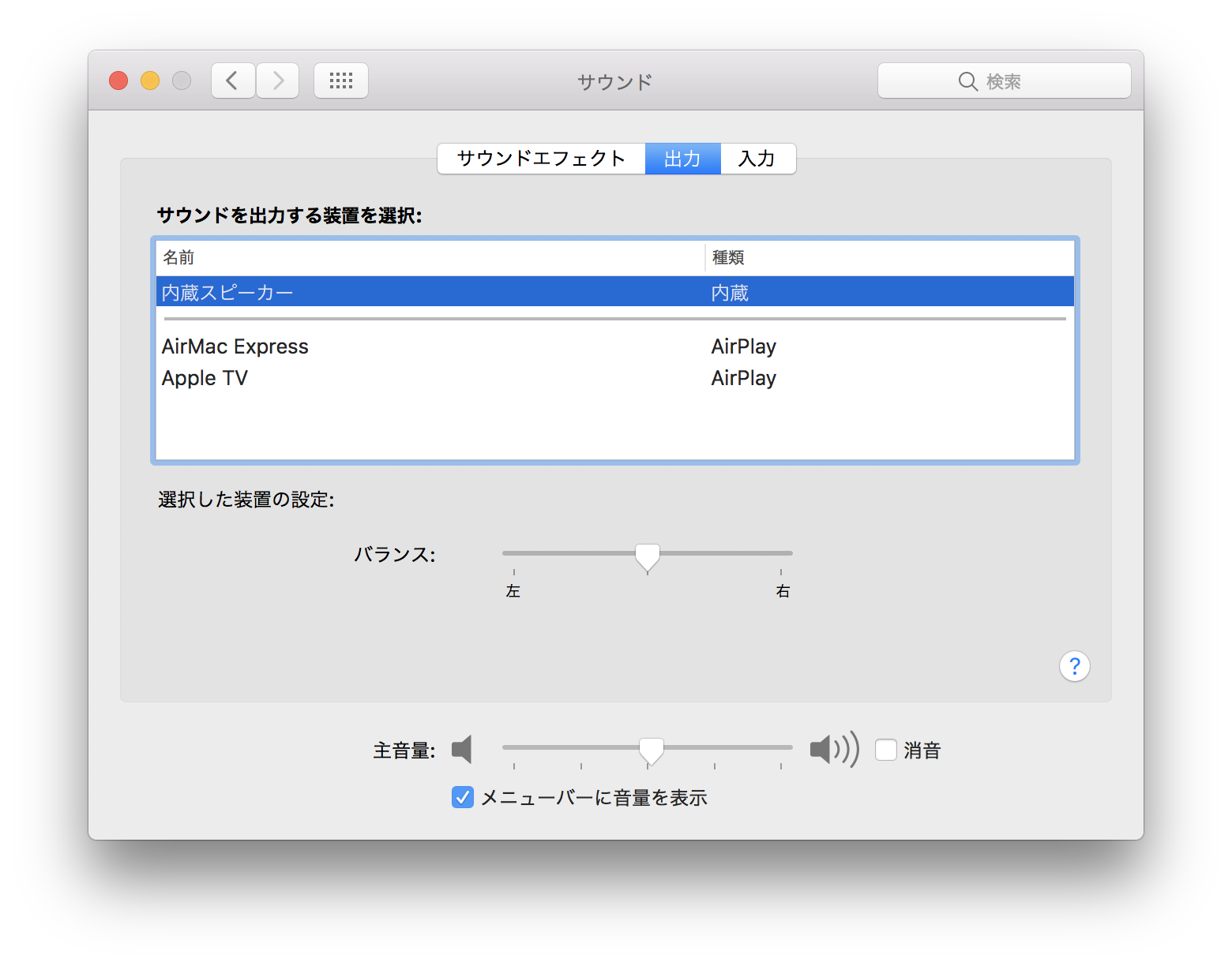 システム環境設定の中のオーディオをクリックして消音になってかいか確かめましたが、消音にはなってませんでした。