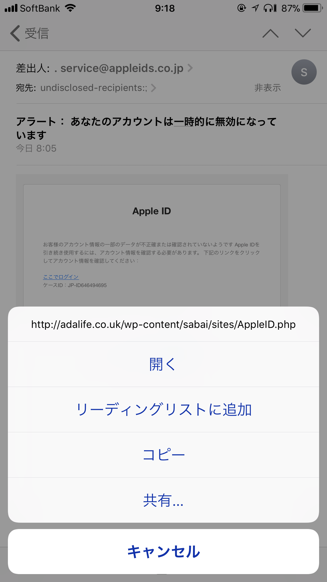 URLをクリックさせるか添付ファイルを開かせるのが、詐欺の入口。