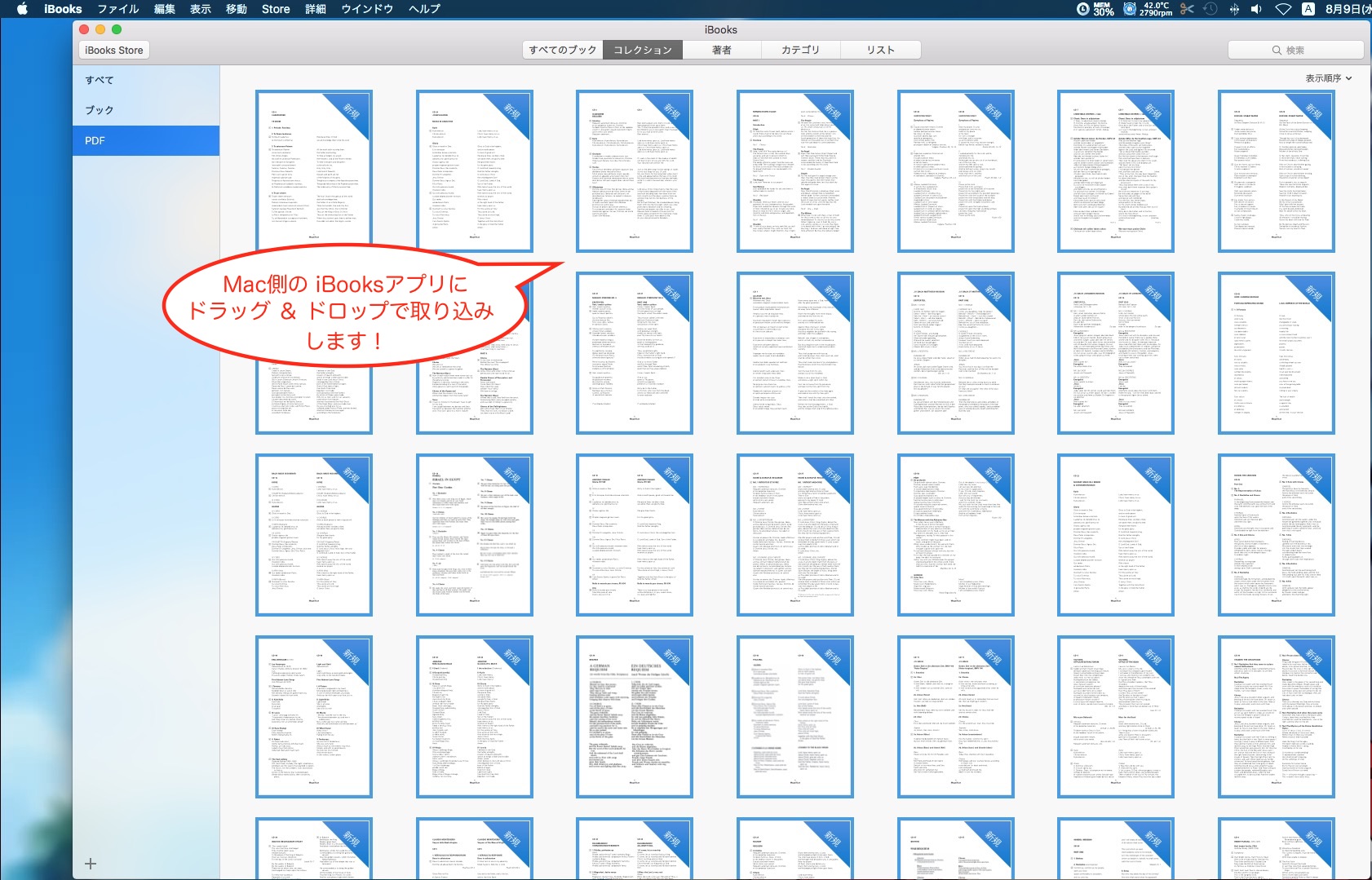 ○ Mac側の iBooksアプリを開いて、PDFファイルを取り込みます。