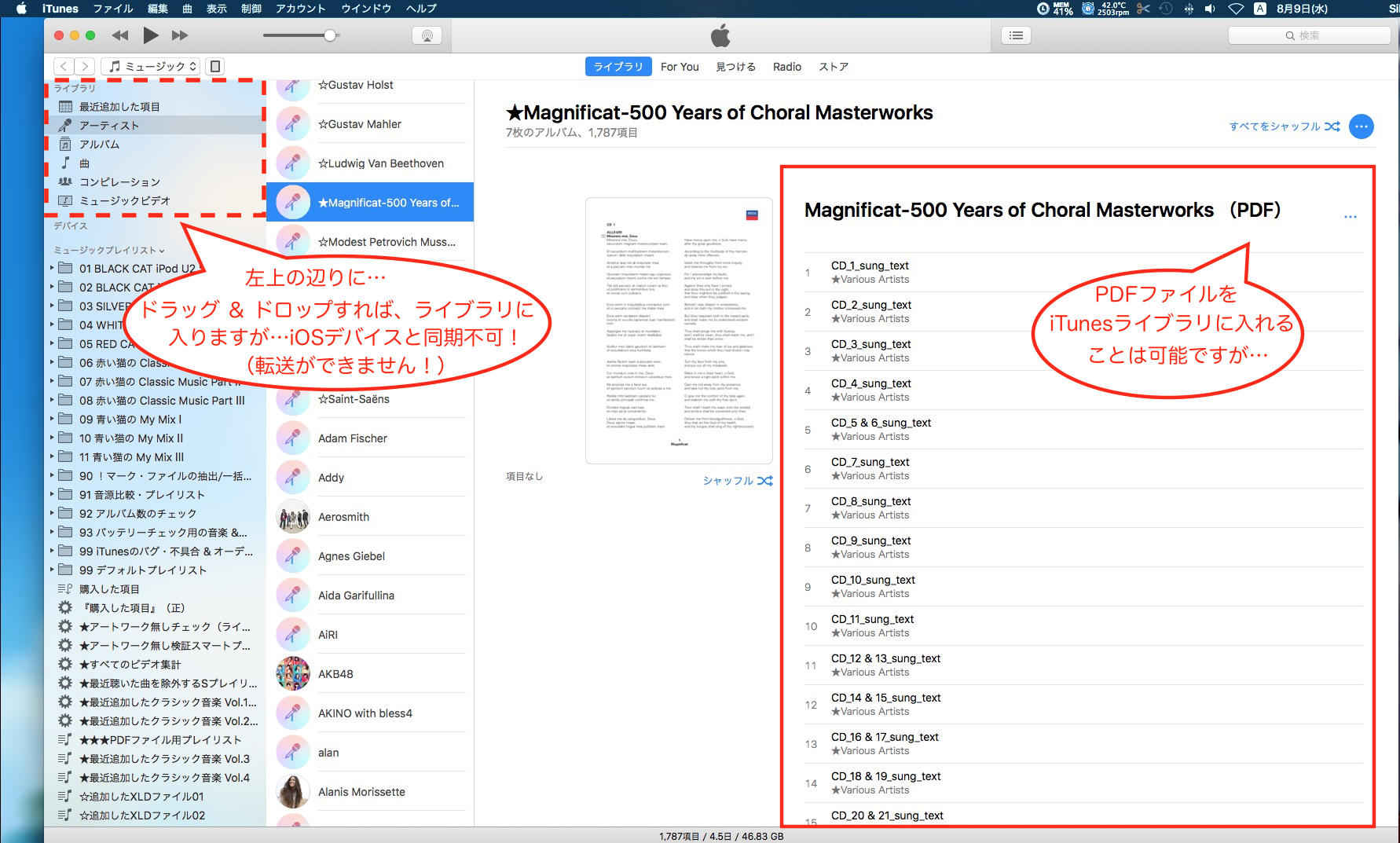 ※ 最後に…一応 iTunesライブラリの画面上に(あくまで「項目」として…)取り込むことは可能なのですが…そのままでは同期(転送)できない仕様になっちゃいました(泣)