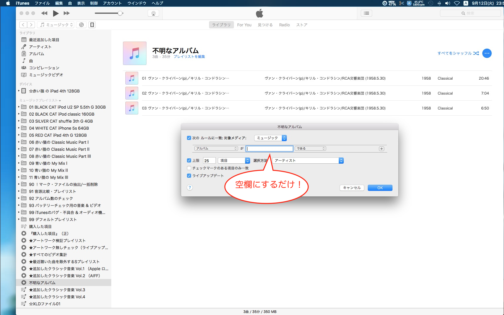 スマートプレイリストの設定について