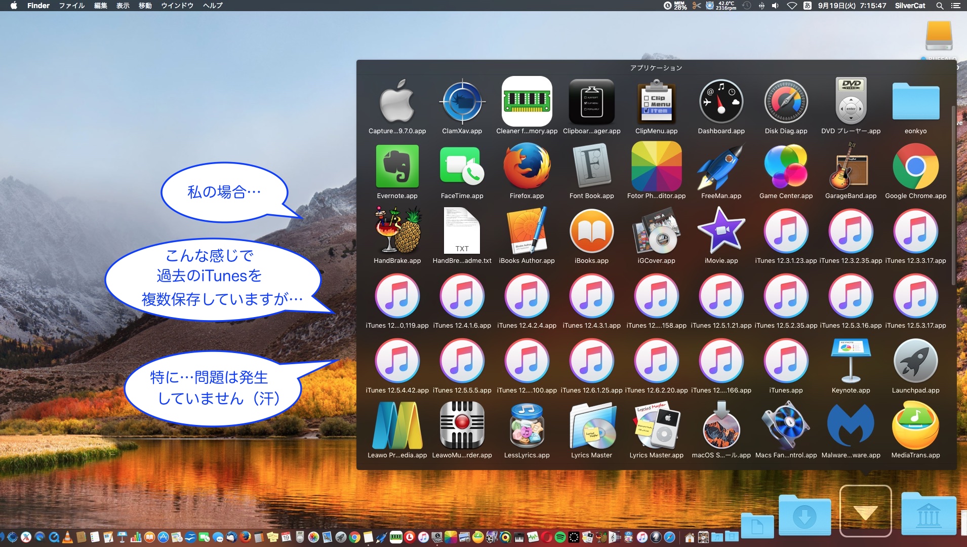 2つのバージョン違いの iTunesを「アプリケーション」フォルダに入れておくのは…ちょこっと不安に感じるかもしれませんが…私の経験上まったく問題は発生しておりません。