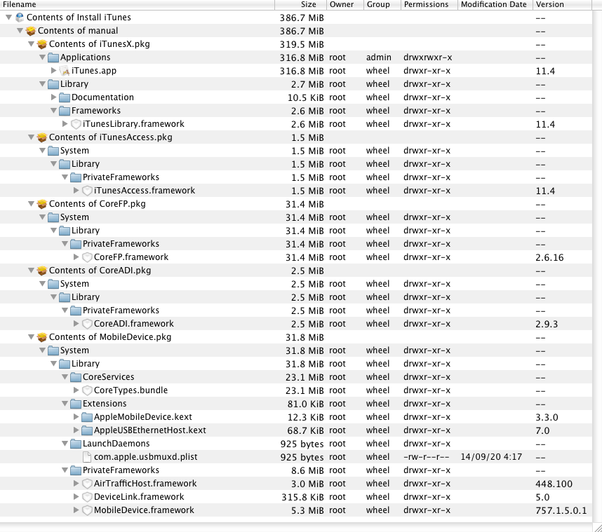 例えば iTunes 11.4 のインストーラを展開するとこんな感じ (古いバージョンですみません...)