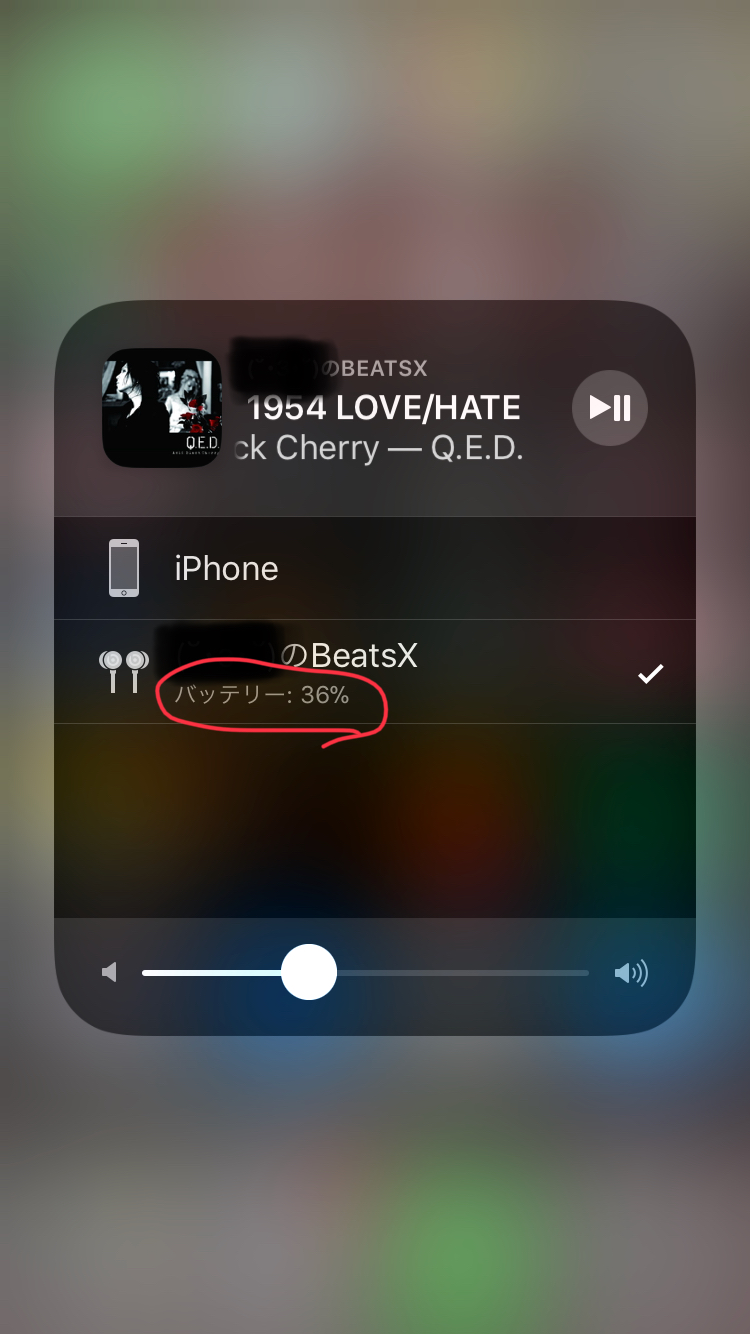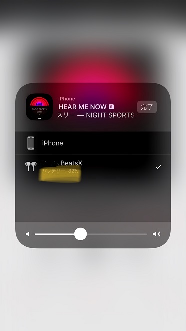 接続中のBeatsXのバッテリーの状態が確認できたかと思うのですが、