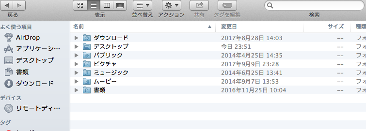 「Finder」を開き、「shift」+「command」+「H」キーを押しましたが、
