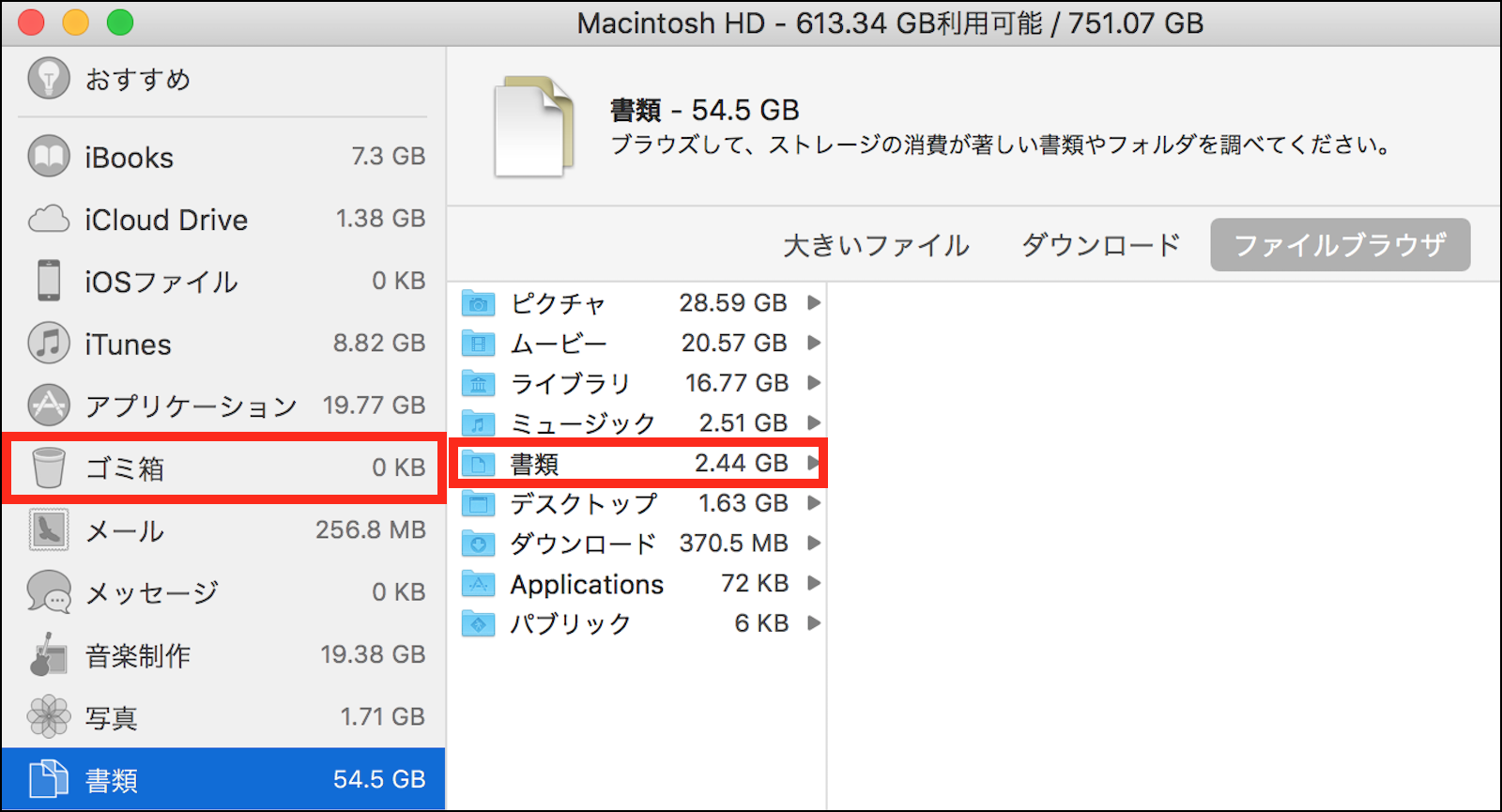 ちなみに、大きなファイルを削除後に「ゴミ箱」を空にされましたでしょうか?