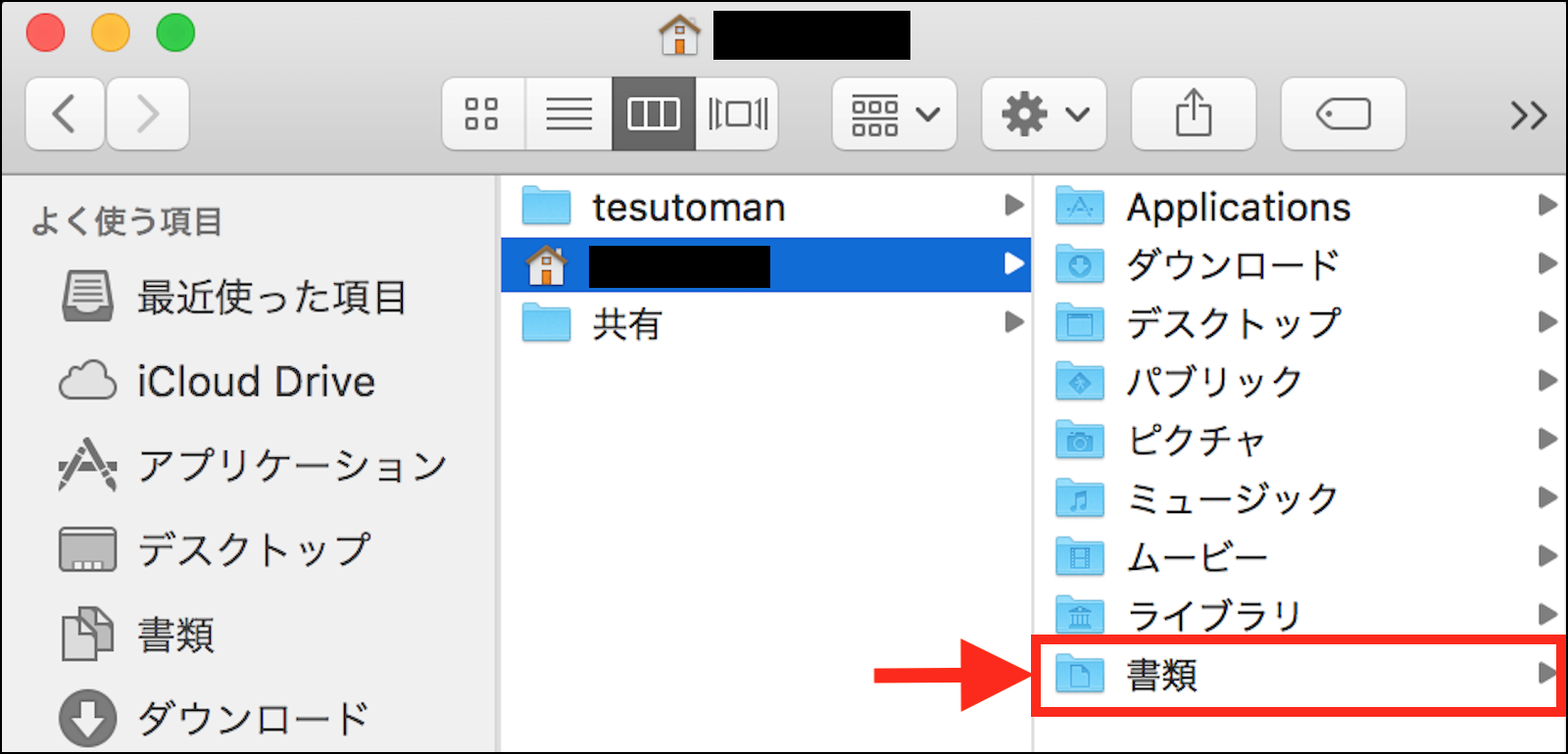 (「Finder」を開いて「ホーム」フォルダ内に「書類」フォルダが表示されているか確認して見て下さい)