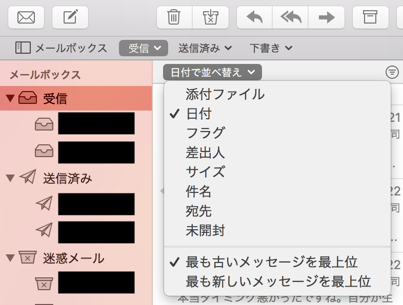 メールボックスの順番がバラバラで見にくいのでアルファベット/あいうえお順に