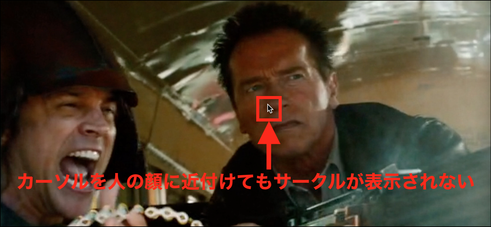 下の画像の様にカーソルを人の顔に近付けても、サークルは表示されなくなります。
