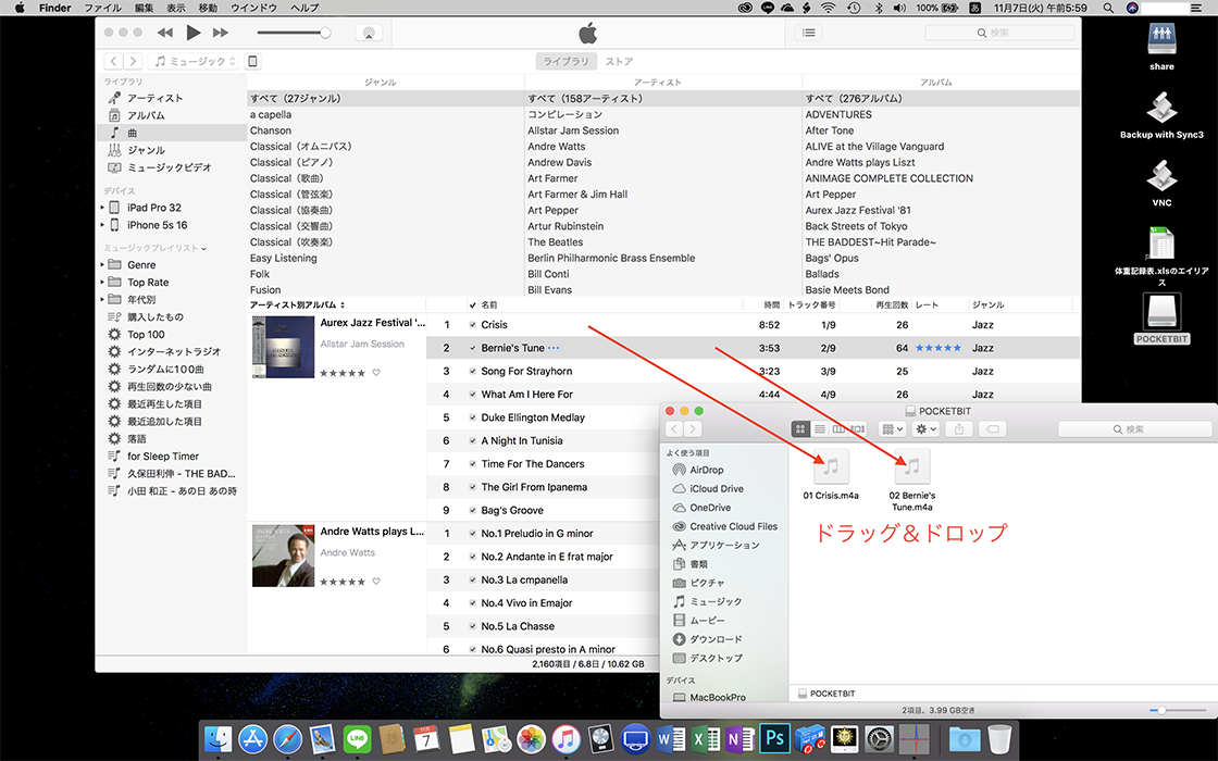 最新版のMacbookPro(タッチバー付き)を使っていますが、Windowsみたく音楽をiTunesからUSBメモリにコピードラック移動は出来ないんでしょうか?