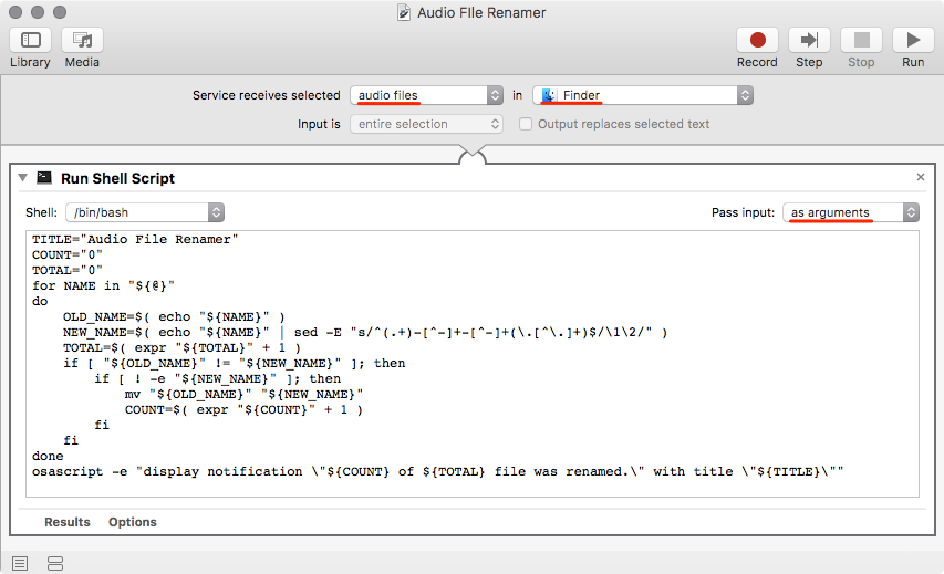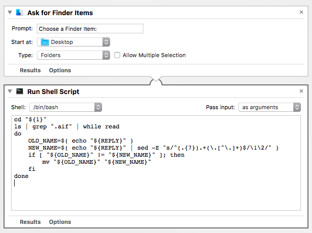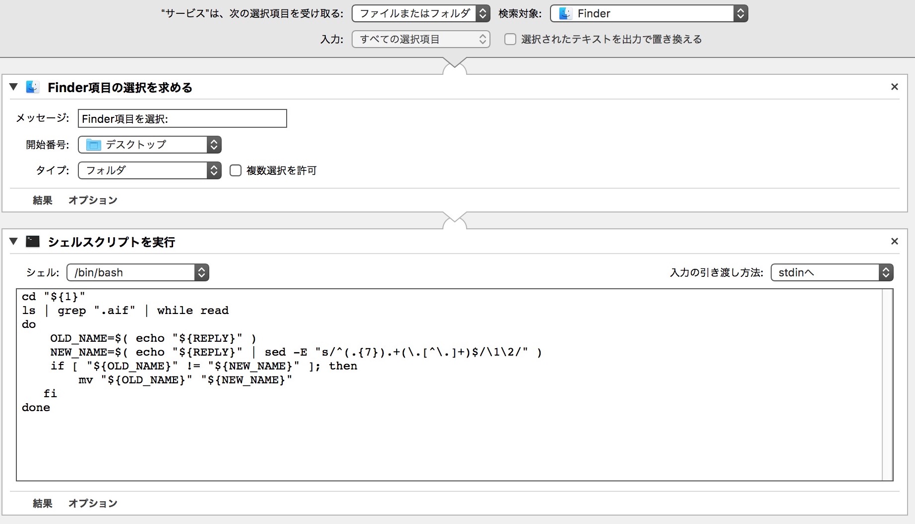 Automater での「Finder項目の名前を変更」ではできないリネーム方法についての質問です。