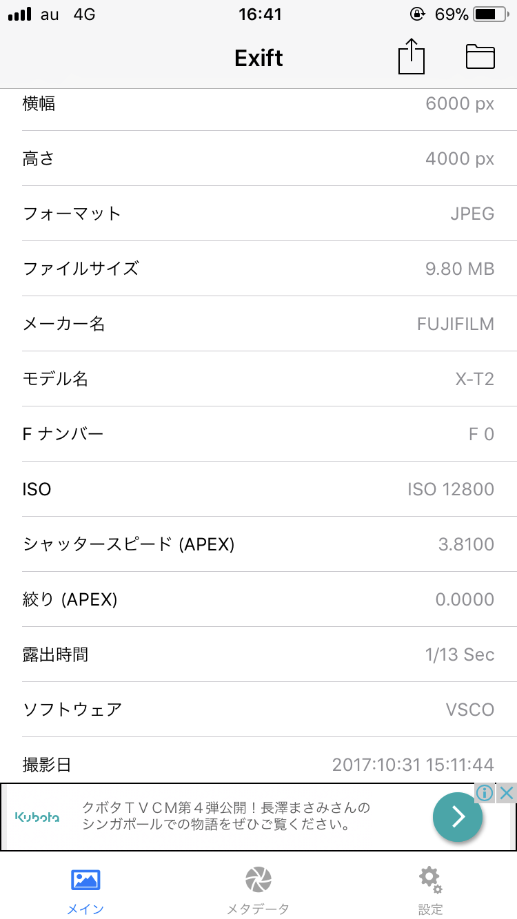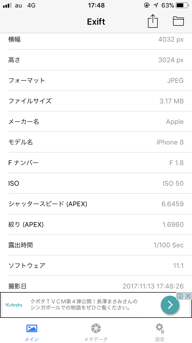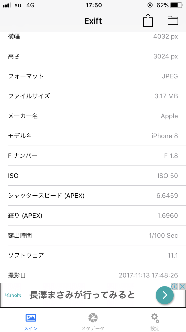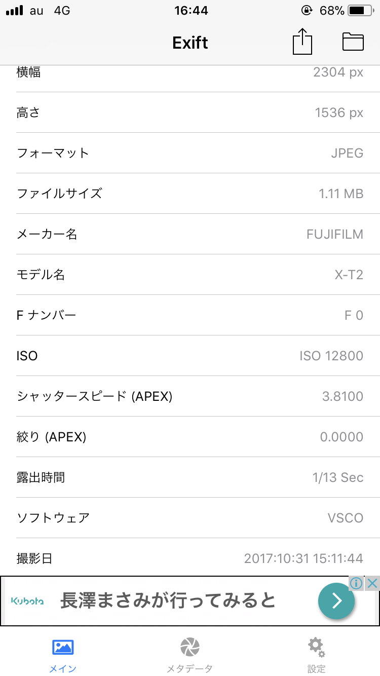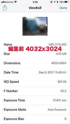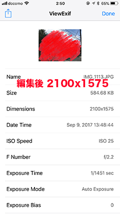 オリジナルサイズでカメラロールに保存後、アプリを使ってサイズを一応確認。