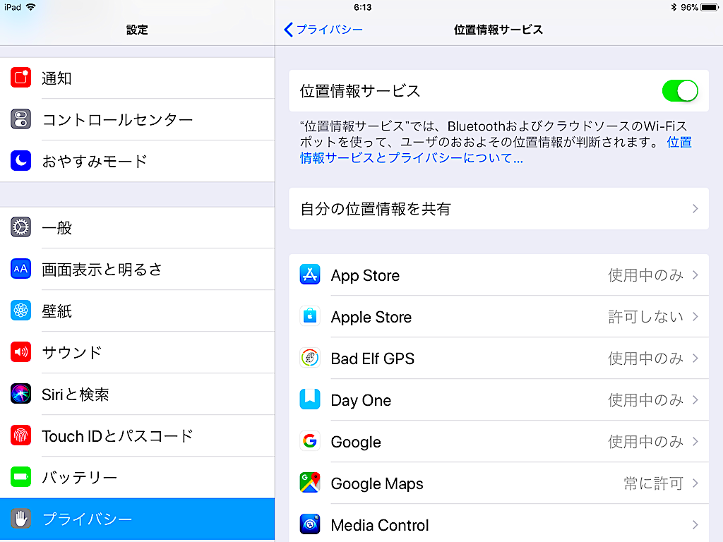 iPad mini4 WiFiモデルでiOS11にアップデートしてから位置情報が自動更新されません。