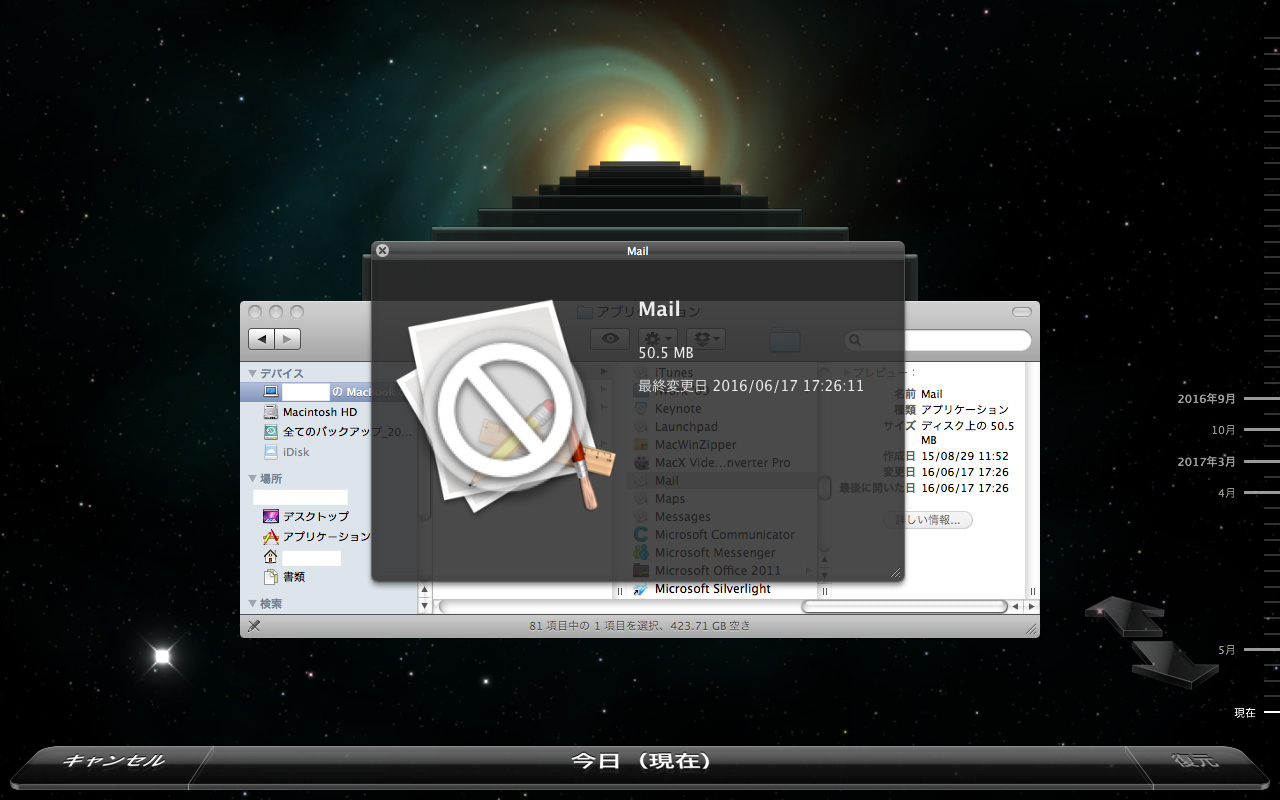 MailアプリもTimeMachineアプリも普通に使えますが、いかんせん古いため、もちろんですが上記OSで出来ることしか出来ません...