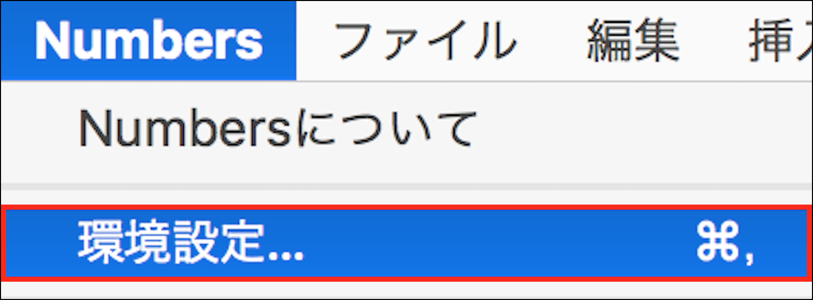 アップルのヘルプサイトでは、「画面上部の「Numbers」メニューで、「Numbers」>「環境設定」と選択します。」と説明されているのですが、そもそも「画面上部のNumbersメニュー」というのがどこにあるのか、わかりません。画面の一番上のメニューバーはSafariを開いた状態になっています。