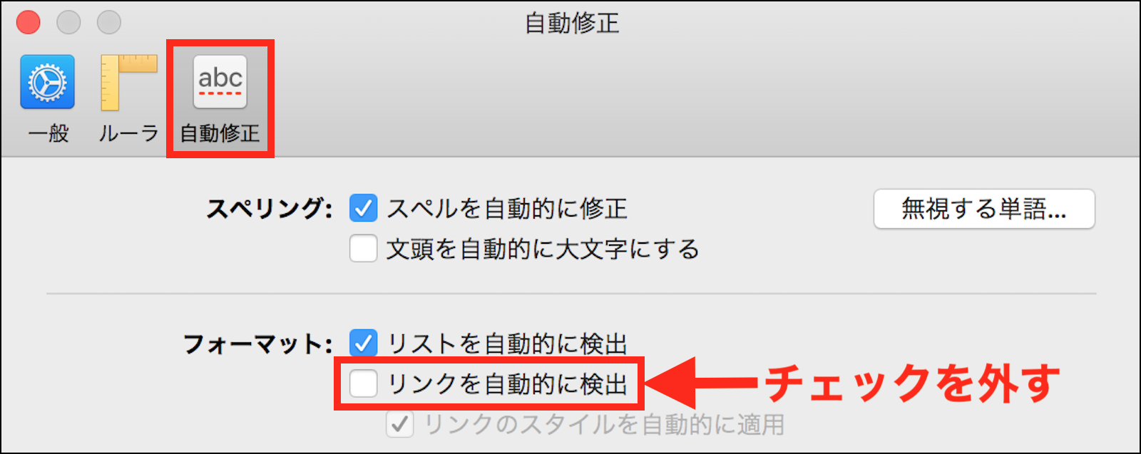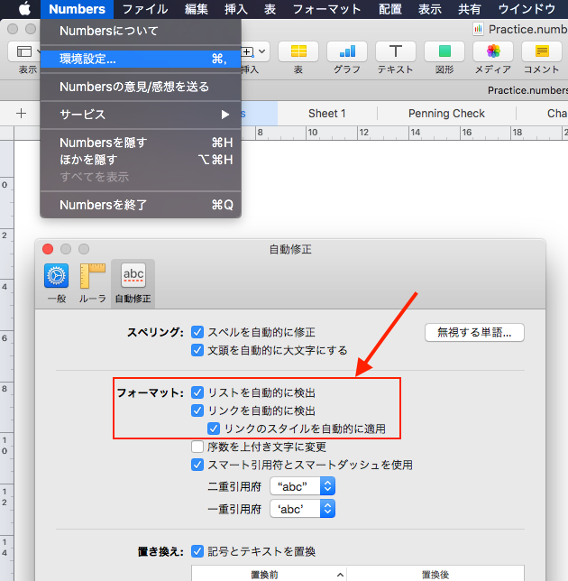 Numbersのセルにメールアドレスも文字列を入力すると、自動的にメールアドレスと認識されて下線付きのスマートリンクに化けるわけですが、この自動変換をオフにしたいのですがうまくいきません。
