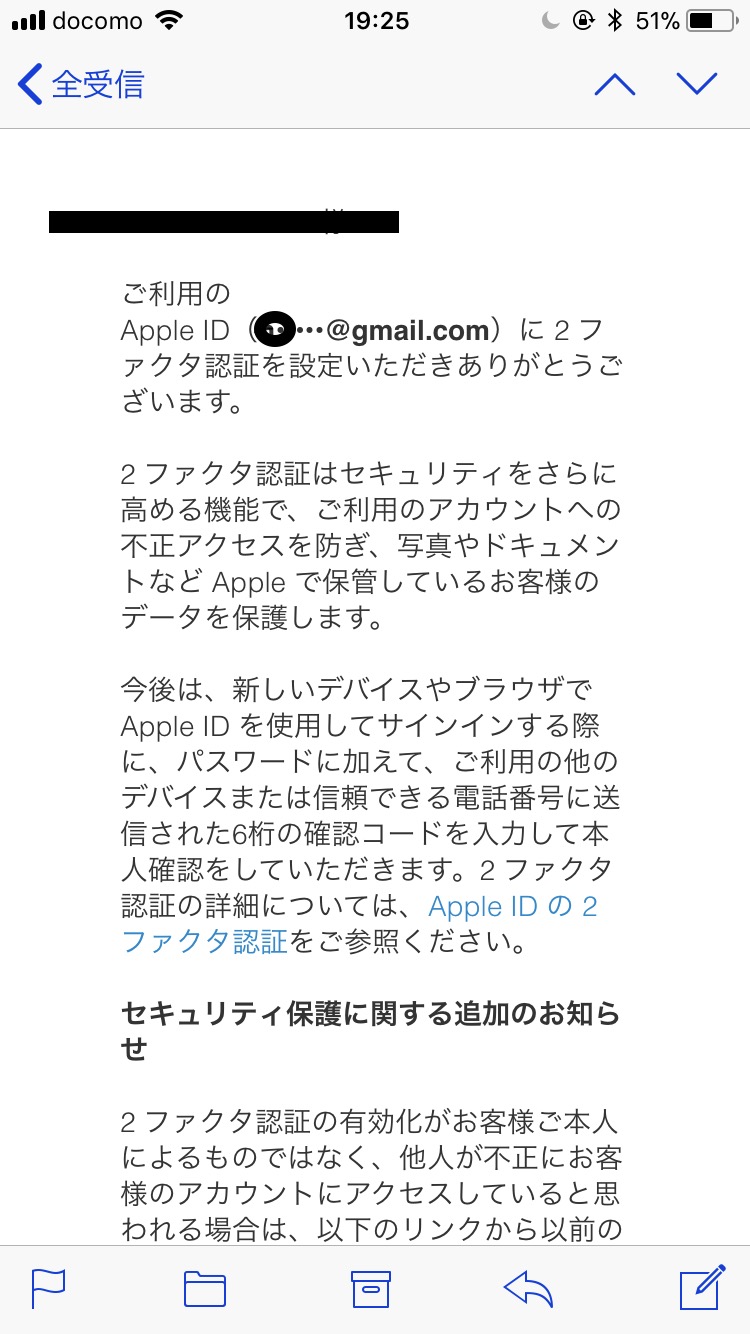 添付されたメールの本文は、Apple IDに2ファクタ認証を設定した場合に受信するメールの様に思えます。