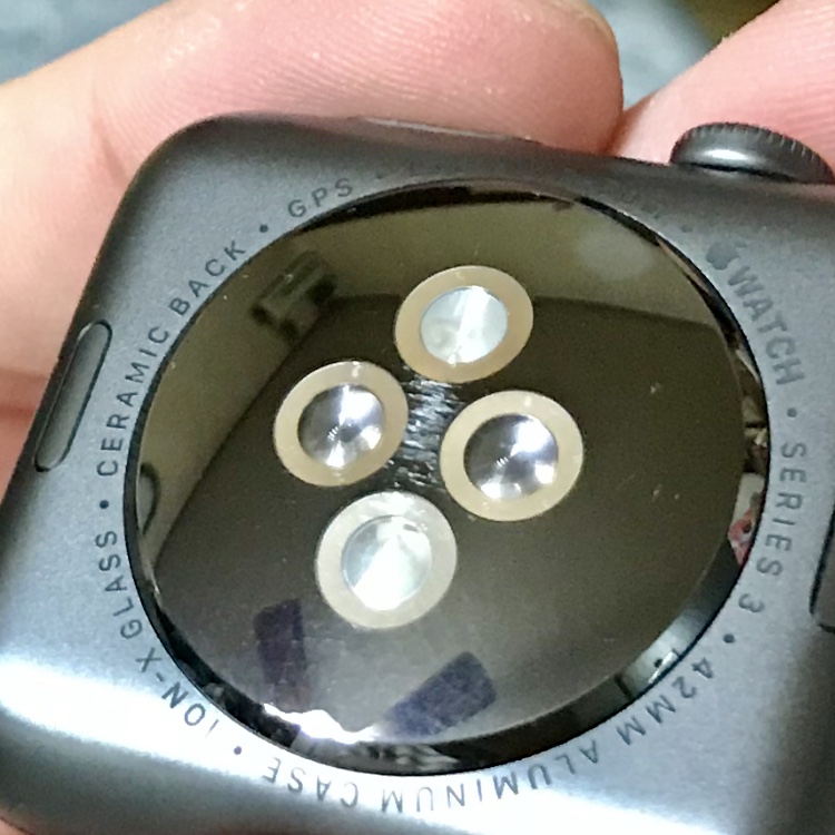 でも不思議ですね・・・セラミックよりも遥かに硬度が劣ると思われる「心拍数センサー」の部分には、全く傷が無い様に見えます。