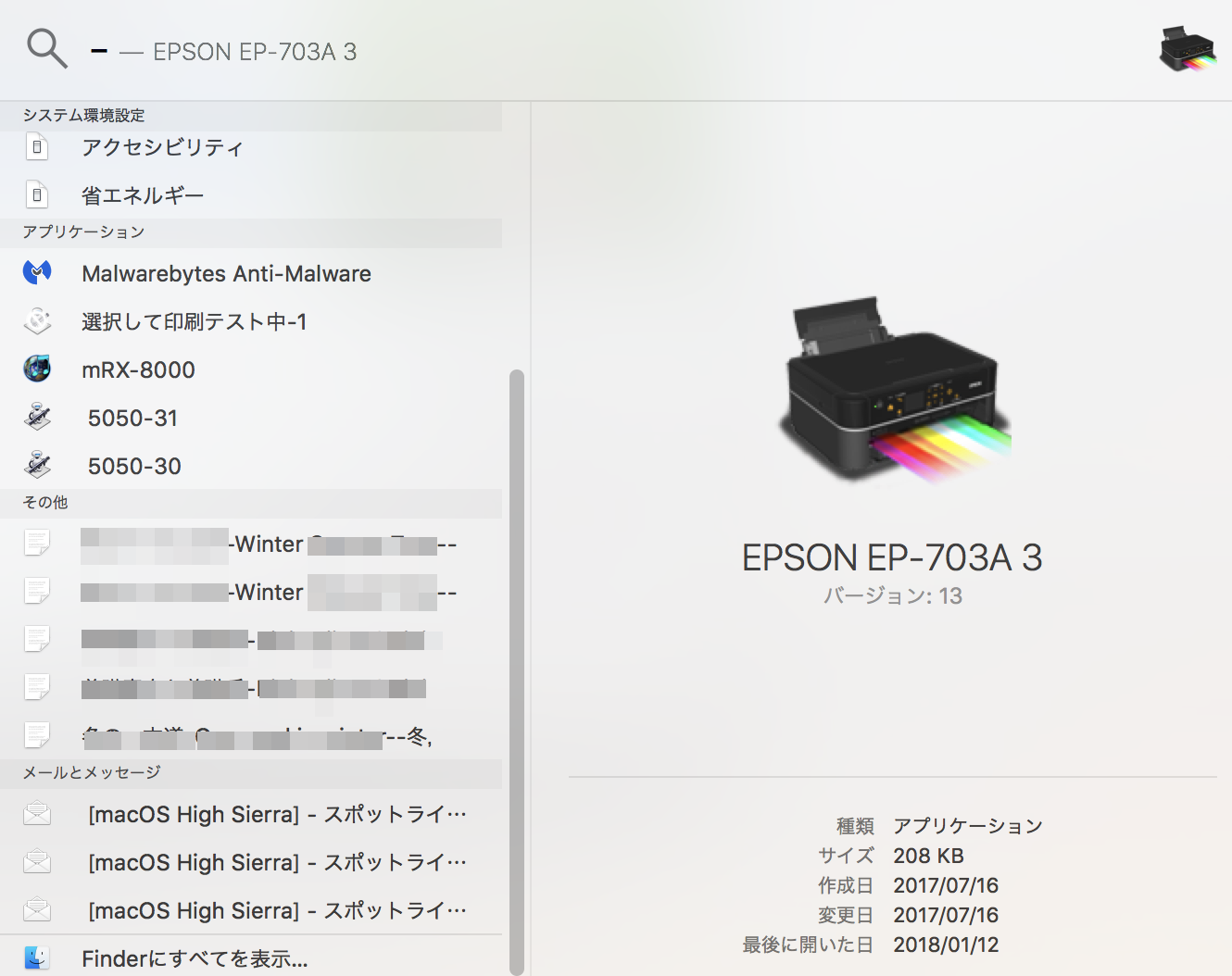 OS を High Sierra にして以降の症状と思われるのですが、スポットライトの