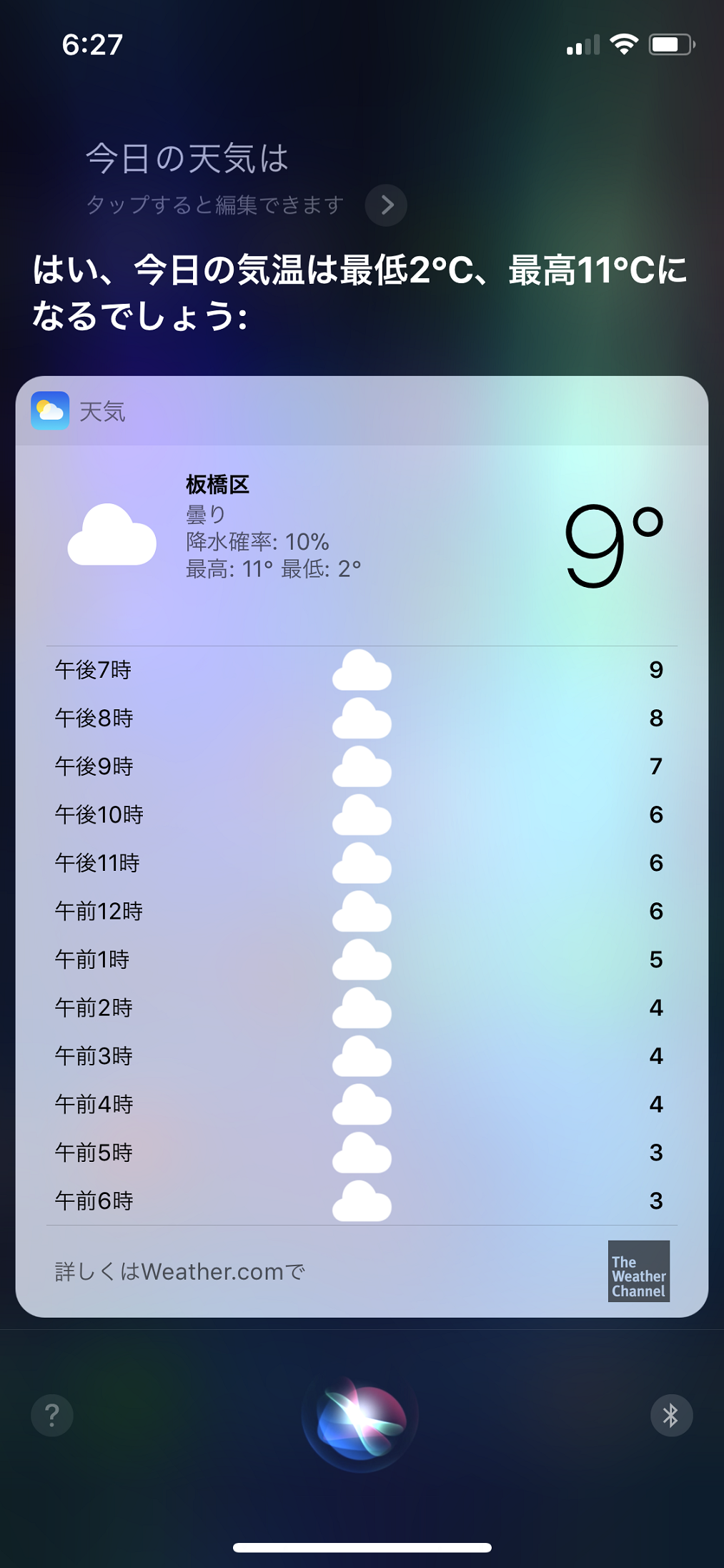 それ以前は同じ設定、同じ訊き方で「場所、天気(午後からは~とかも)、気温」という感じで応えていました。