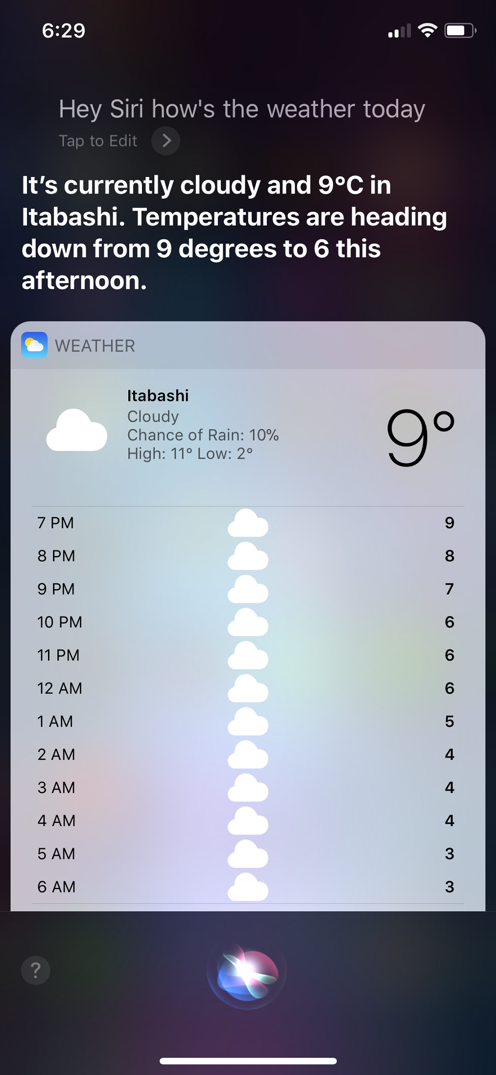 恐らくiOS11.2.2にアップデートして以降ですが、Hey,SiriもしくはAirPodsタップでSiriを起動し「今日の天気は」と訊くと、気温しか応えなくなりました。