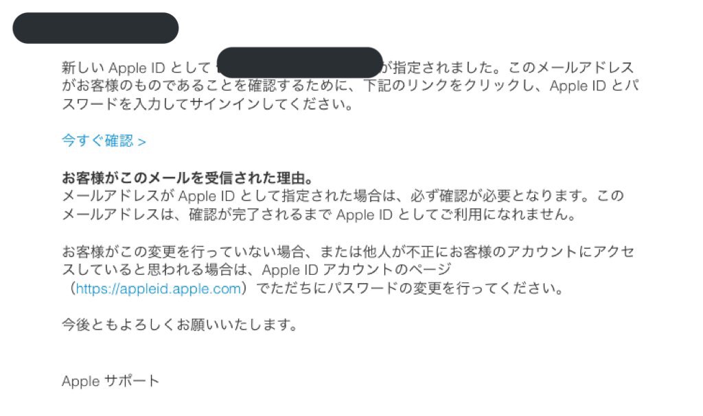 (Apple ID はメールアドレスなので、偽メールに記載されていても不思議ではありませんが、「本名(フルネーム)」が記載されていない場合は、偽メール確定です)