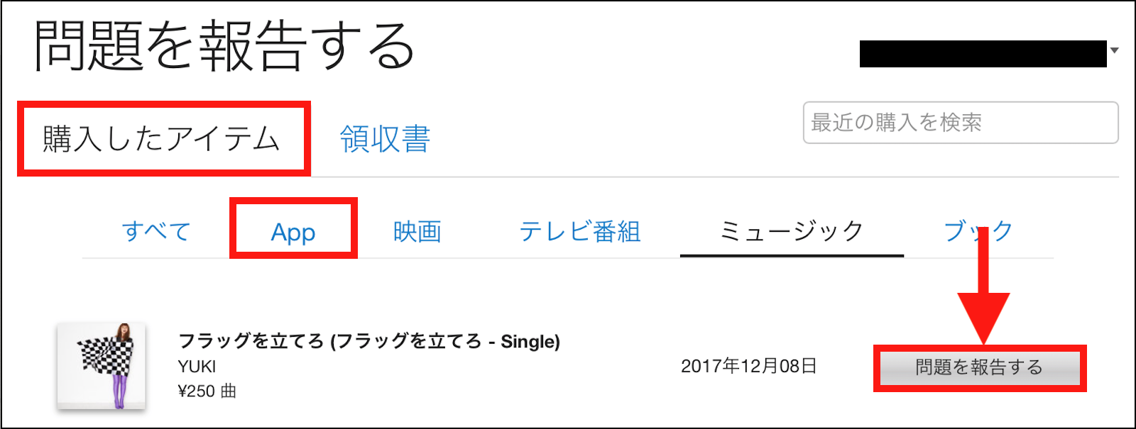 Report a Problem のページ(過去 90 日間の購入内容を確認出来ます)に、お子様が App Store で誤って有料コンテンツを購入したした時に使用した Apple ID でサインインし、「購入したアイテム」「App」と選択して、誤って購入したアイテムの右端に有る「問題を報告する」ボタンをタップして下さい。