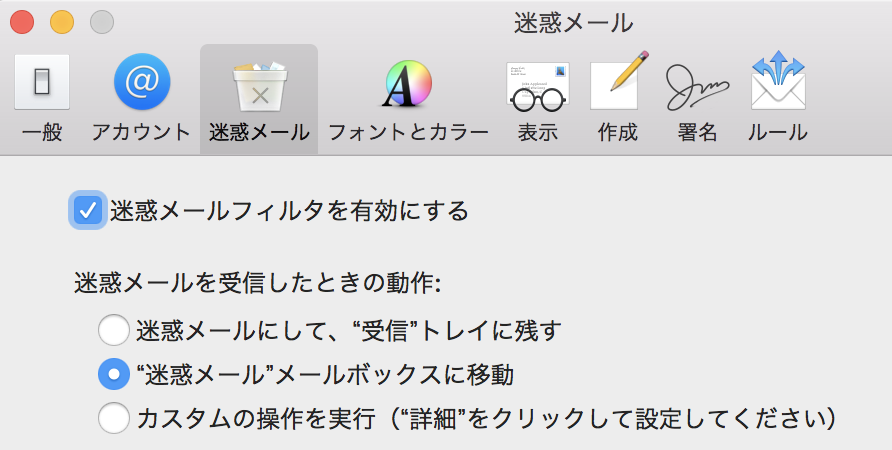 あとは環境設定の迷惑メールタブで